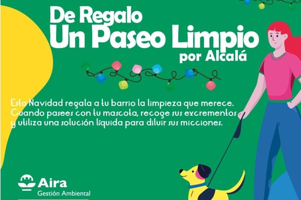 Dentro de la campaña de concienciación de Aira Gestión Ambiental, De regalo un paseo limpio por Alcalá, mañana se celebrará una jornada dedicada a la tenencia responsable de animales de compañía. Este evento, abierto a toda la ciudadanía, contará con una amplia programación de actividades formativas, lúdicas y culturales dirigidas a todos los públicos.